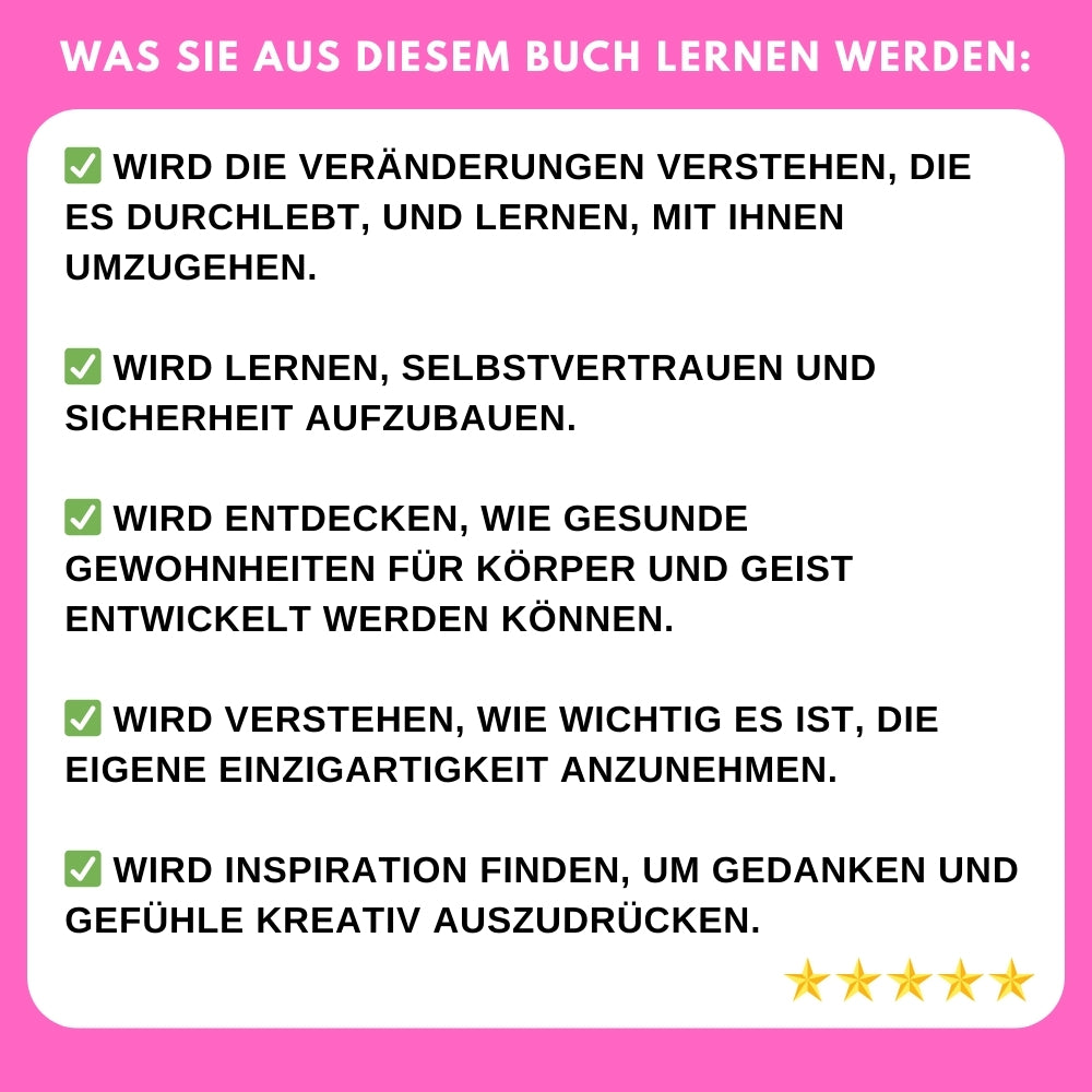 Dieses Buch wurde so gestaltet, dass es MĂ€dchen mithilfe spannender Geschichten und praktischer RatschlĂ€ge hilft, die VerĂ€nderungen zu verstehen, die sie wĂ€hrend des Heranwachsens erleben. Mit einem warmen und ermutigenden Ton fĂŒhrt es sie Schritt fĂŒr Schritt durch die Herausforderungen dieser aufregenden Lebensphase.