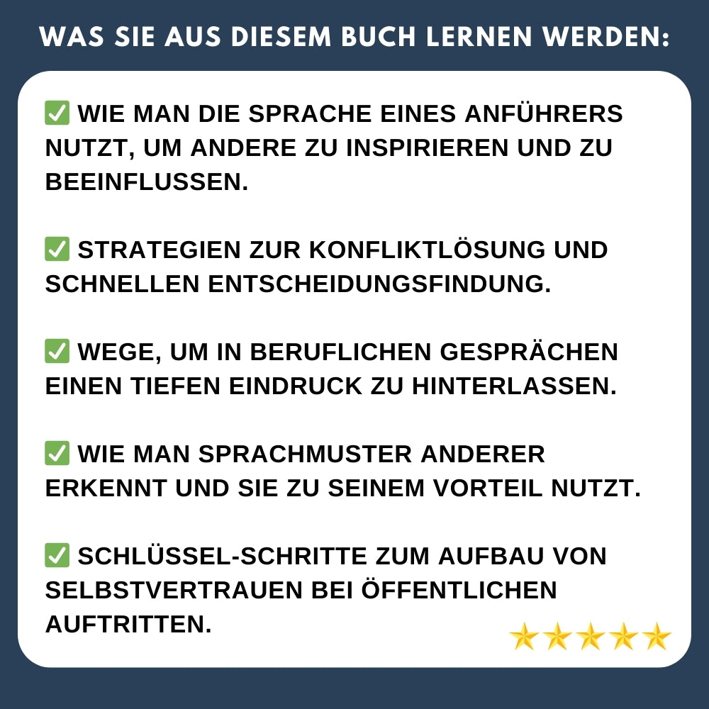 Lerne, mit Selbstbewusstsein, Klarheit und Autorität zu sprechen – genau wie die besten Führungskräfte. Dieses Buch gibt dir praktische Werkzeuge und Fähigkeiten für die tägliche Kommunikation, erfolgreiche Verhandlungen und beeindruckende Präsentationen. Unabhängig von deinem aktuellen Niveau hilft dir dieser Leitfaden, dich auf ein höheres Level der Ausdrucksfähigkeit zu bringen.